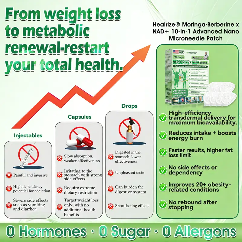 Healrizeยฎ Moringaยท Berberine x NAD+ 10-in-1 Advanced Nano Microneedle Patch: 98% Absorption Rate, Transforming Weight, Liver, Gut & Skin Healt